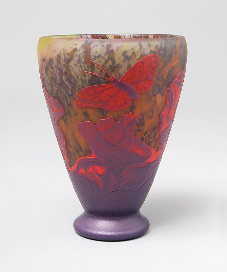 Shop > FRENCH GLASS > Daum Nancy >Daum Nancy Roses & Butterflies Vase